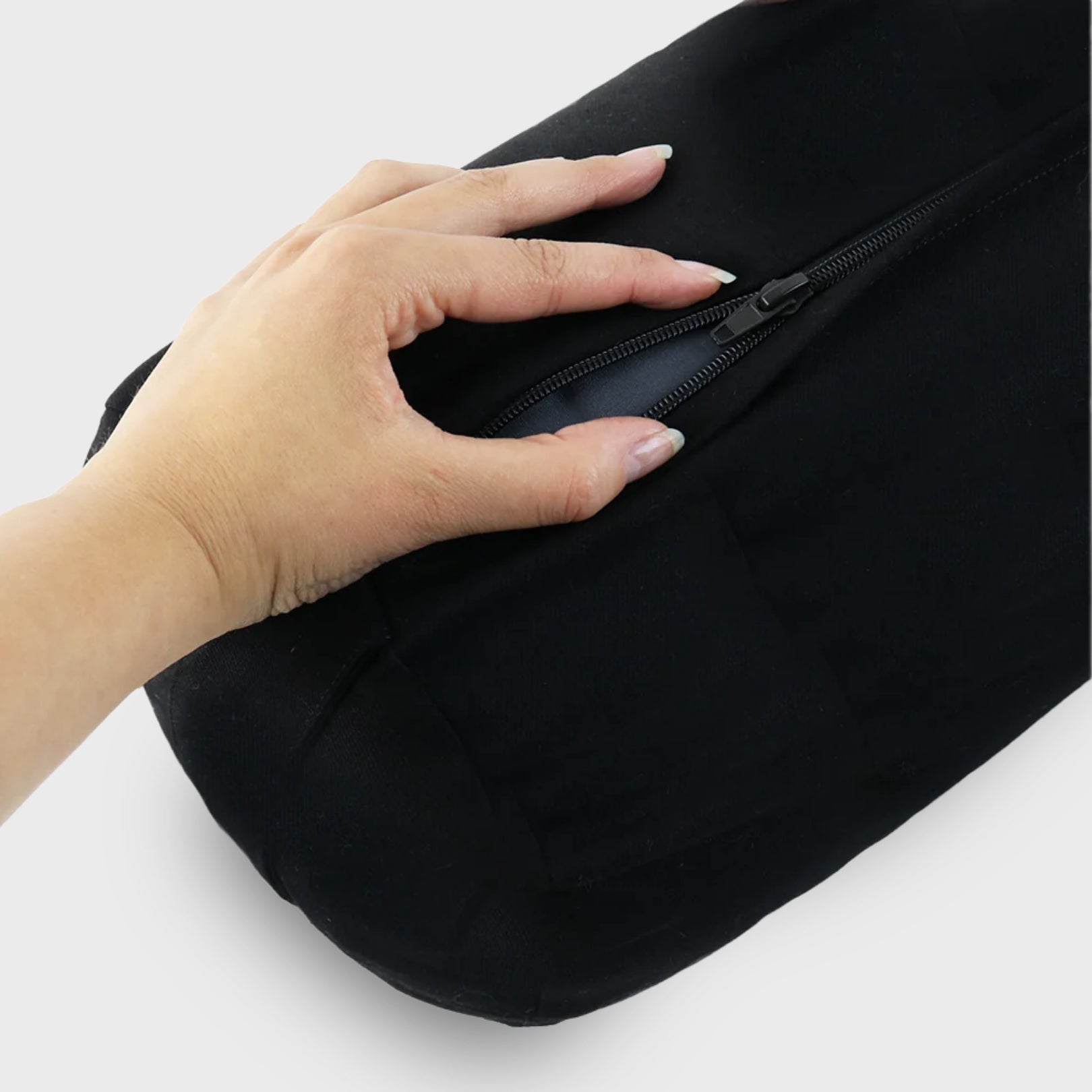Cojín fabricado a mano con doble funda, relleno de productos reciclados de diferentes densidades. Cuenta con un asa de género para transportarlo cómodamente. Incluye relleno y funda interior. Fácil de lavar.