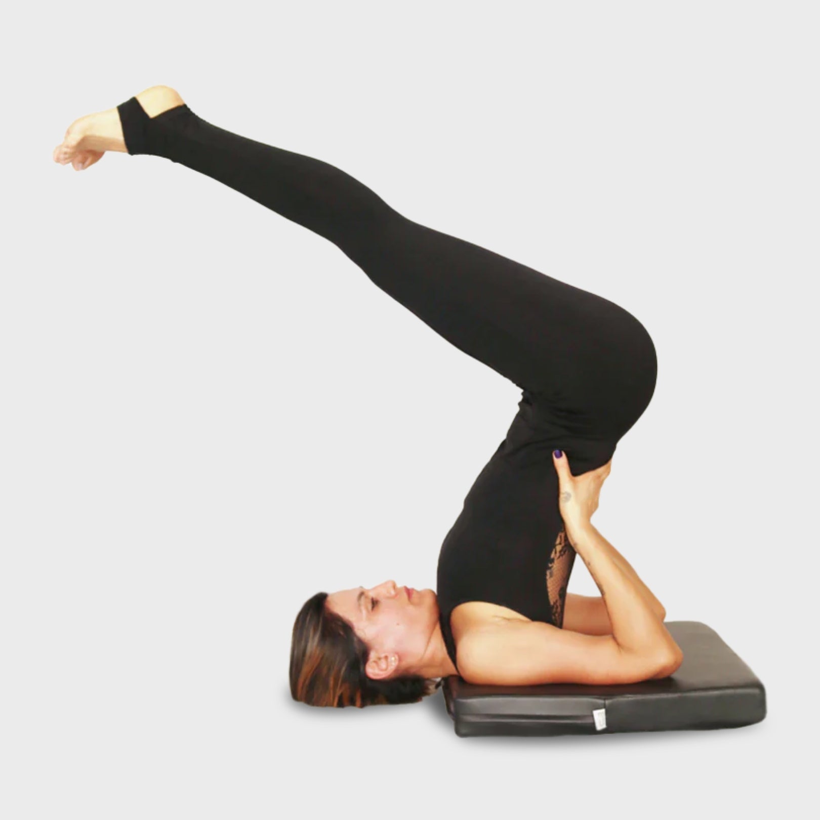 Cojín técnico para Salamba sarvangasana. Hecho a mano con funda de cuerina y relleno de espuma para dar firmeza, agarre y comodidad. Diseñado especialmente para la progresión en la práctica de esta postura invertida; ideal para quienes presenten desviaciones de columna u otros problemas de desalineación.