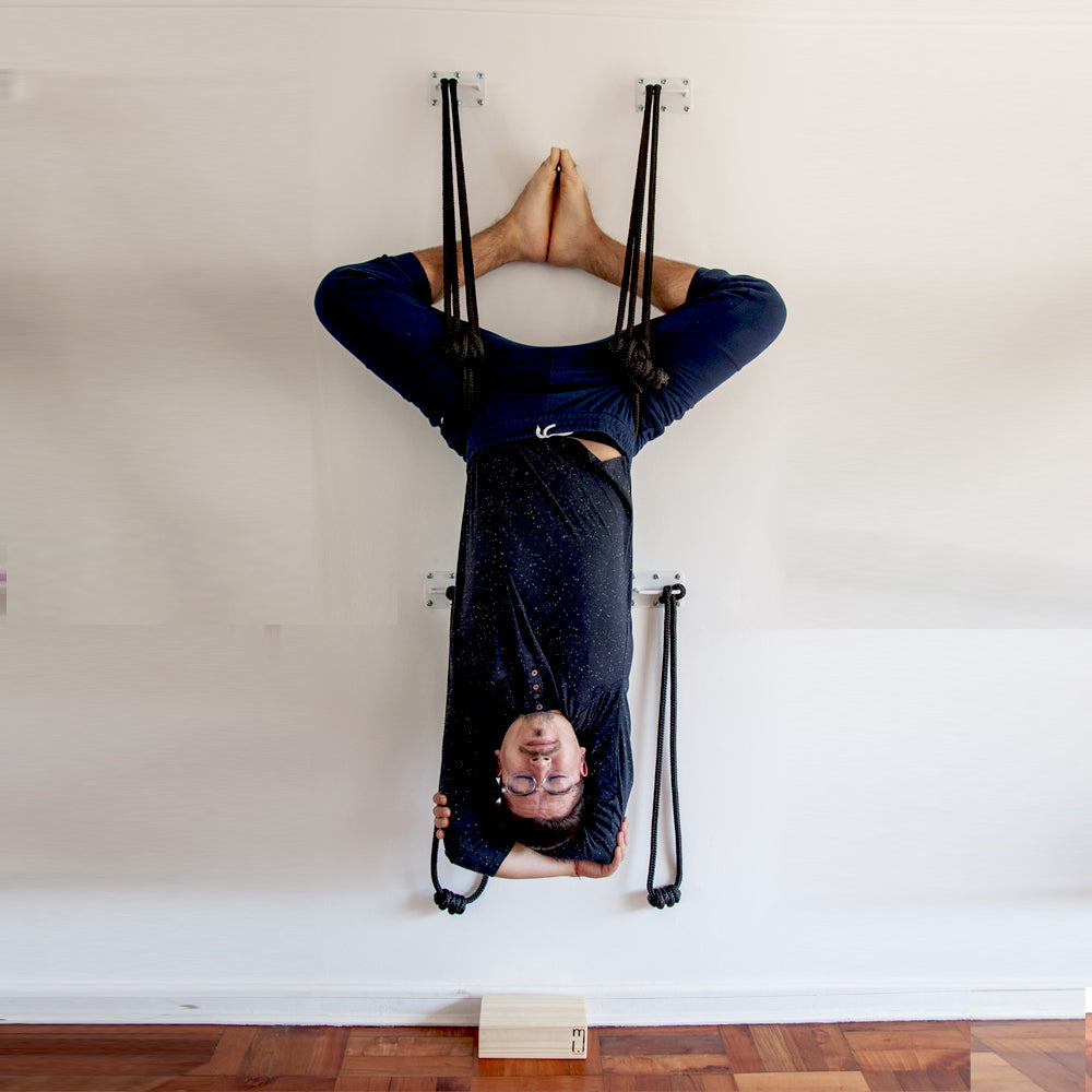 Los anclajes se suelen colocar a 110cm del piso y a 200cm del suelo. Y separados entre ellos 45 cm. (Ancho de una esterilla de yoga) En una pared sólida y firme con tarugos de concreto de 10mm y tornillos de 10 mm.