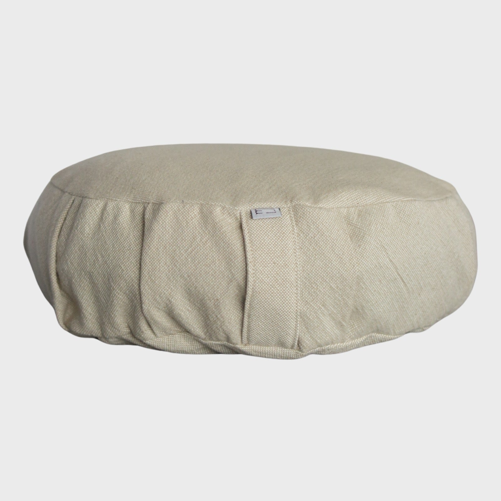 Cojín de meditación hecho a mano, relleno con cáscara de arroz que aporta firmeza y ligereza. El apoyo se mantiene firme y no cede durante la práctica. Con cierres ocultos, acabados impecables y telas seleccionadas para producciones limitadas. Incluye relleno y funda interior. Fácil de lavar.