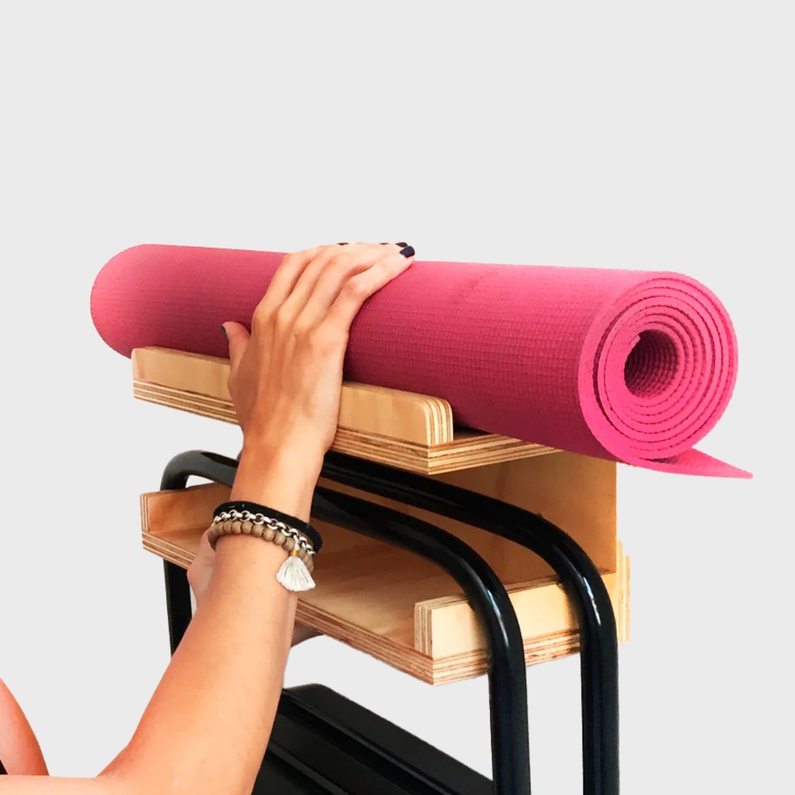 Diseñada especialmente por Medusalab para acomodar tus props de yoga en tu sala o rincón de práctica. Su diseño es versátil y muy fácil de instalar. Este mueble de madera de mueblería multifuncional también puede ser utilizado como altar o repisa.